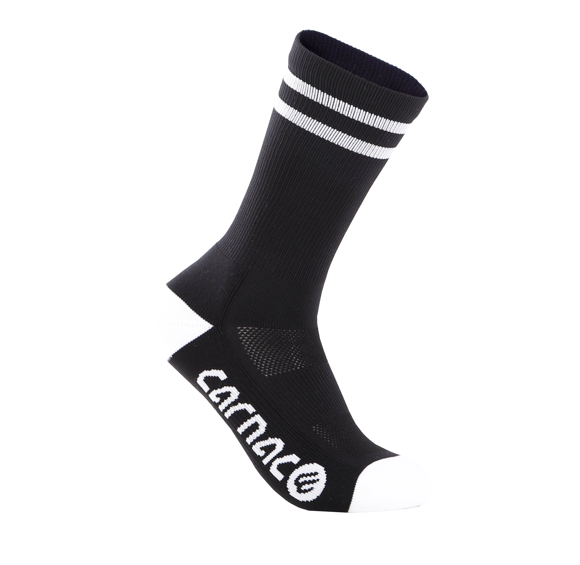 Carnac Stripe Perform Cycling Socks are our go-to cycling sock for comfort and performance in a stylish package. Featuring a supportive and durable mid foot compression rib for perfect fit and breathable air mesh top panels to keep your feet cool for all day comfort. With 8mm classic contract stripes and a rib construction style they not only work great but look great too.