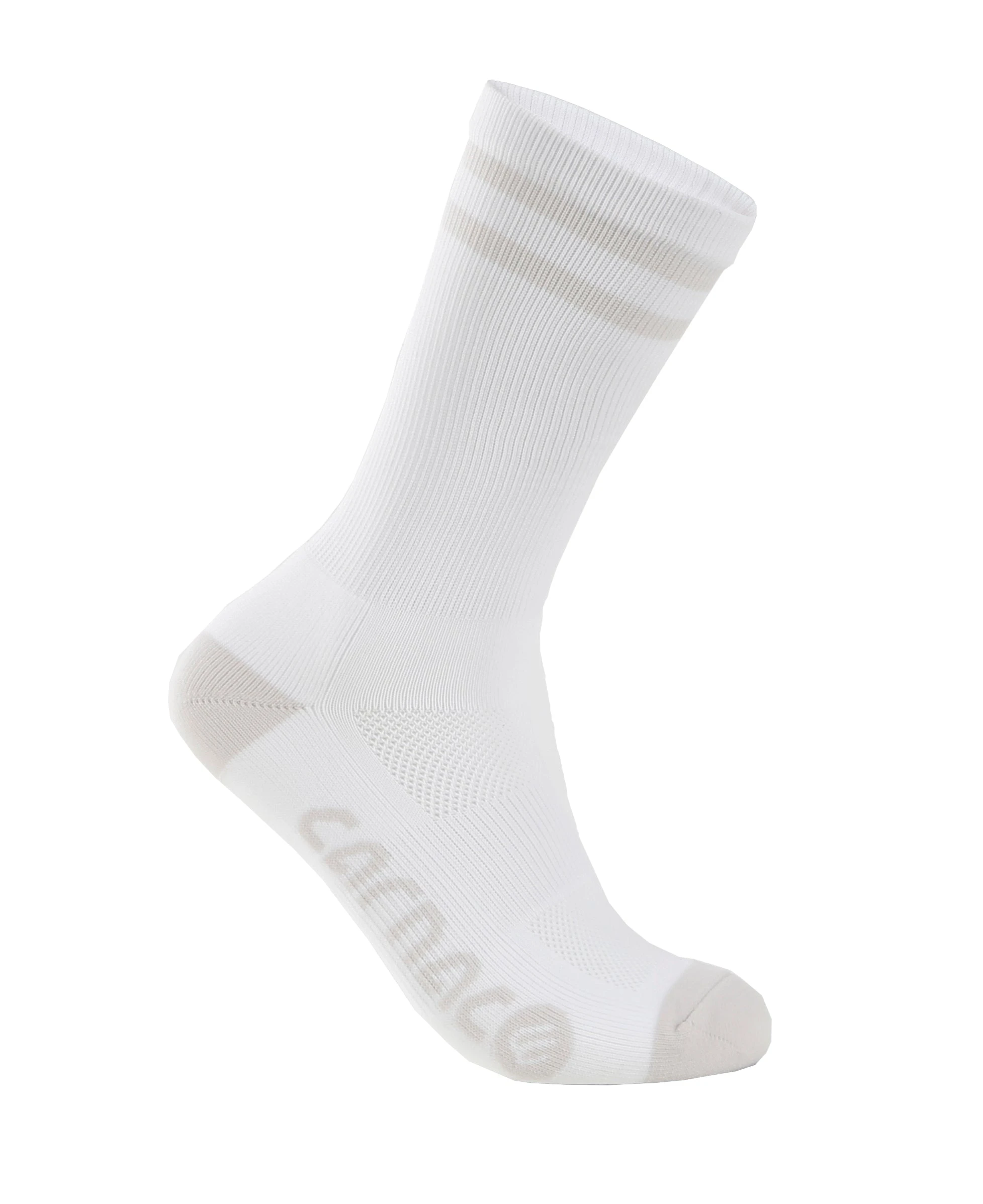Carnac Stripe Perform Cycling Socks are our go-to cycling sock for comfort and performance in a stylish package. Featuring a supportive and durable mid foot compression rib for perfect fit and breathable air mesh top panels to keep your feet cool for all day comfort. With 8mm classic contract stripes and a rib construction style they not only work great but look great too.