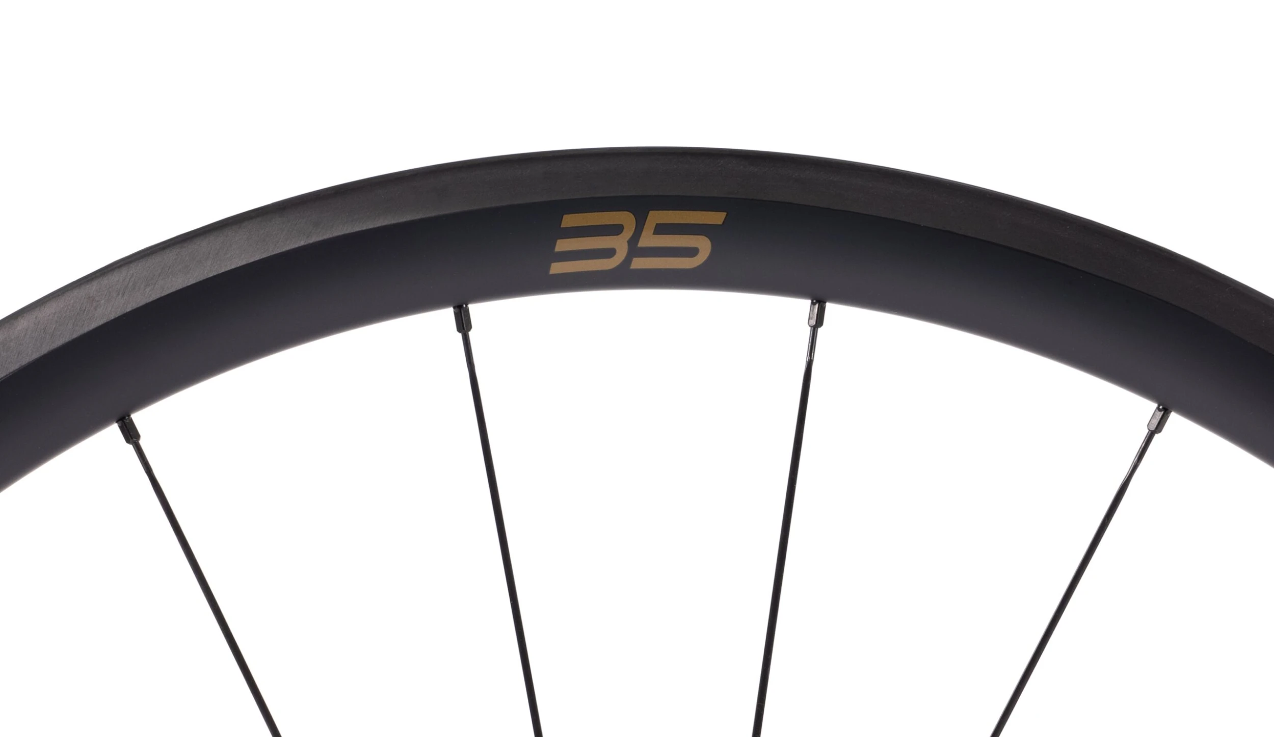- Tubeless ready and clincher compatible carbon rims / 35mm Deep / 28mm External Width / 21mm Internal Width