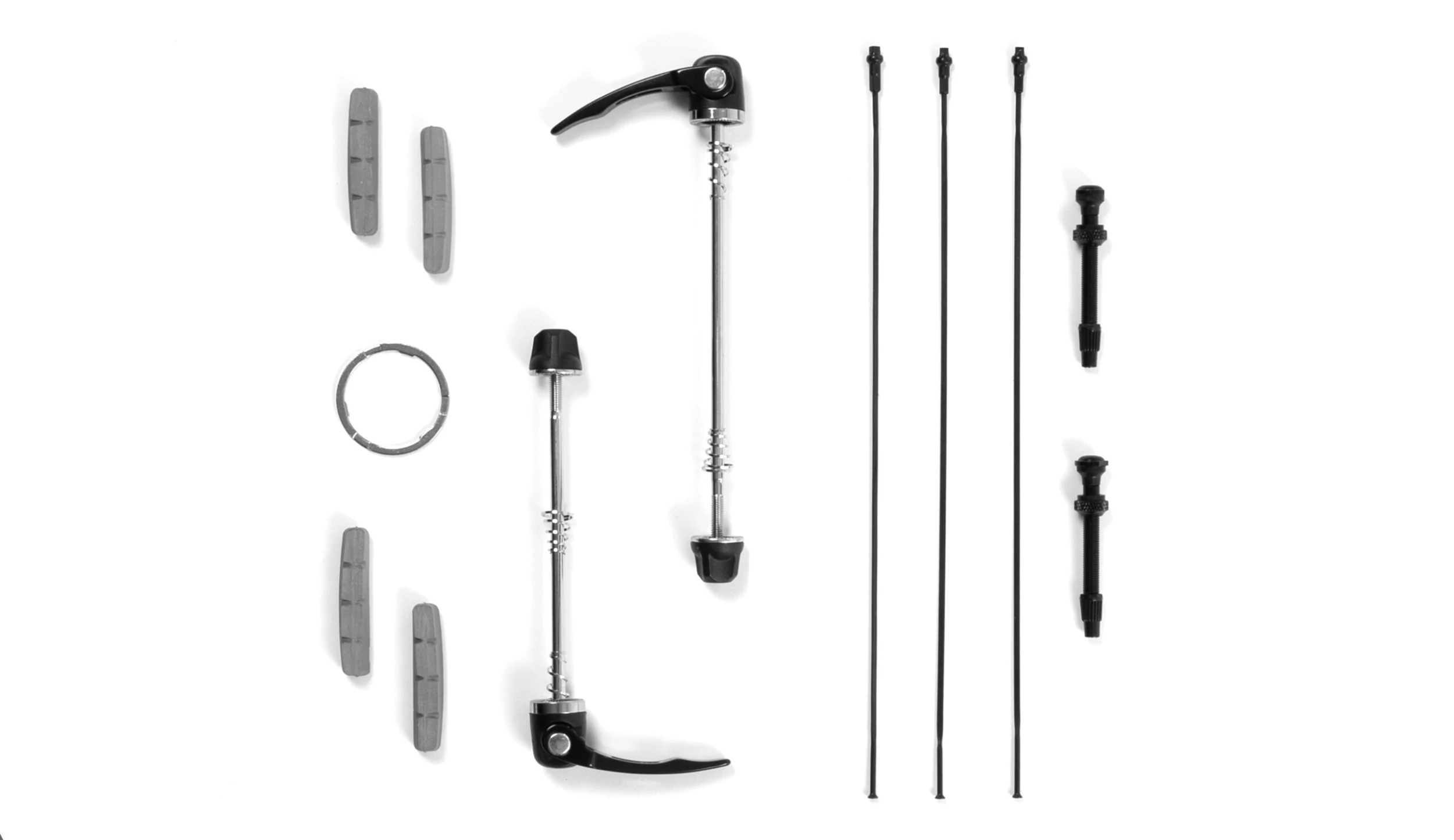 - Rim Brake Extras: Includes: Spare spoke set, tubeless valves, Carbon specific brake pads, Cam lock quick release skewers