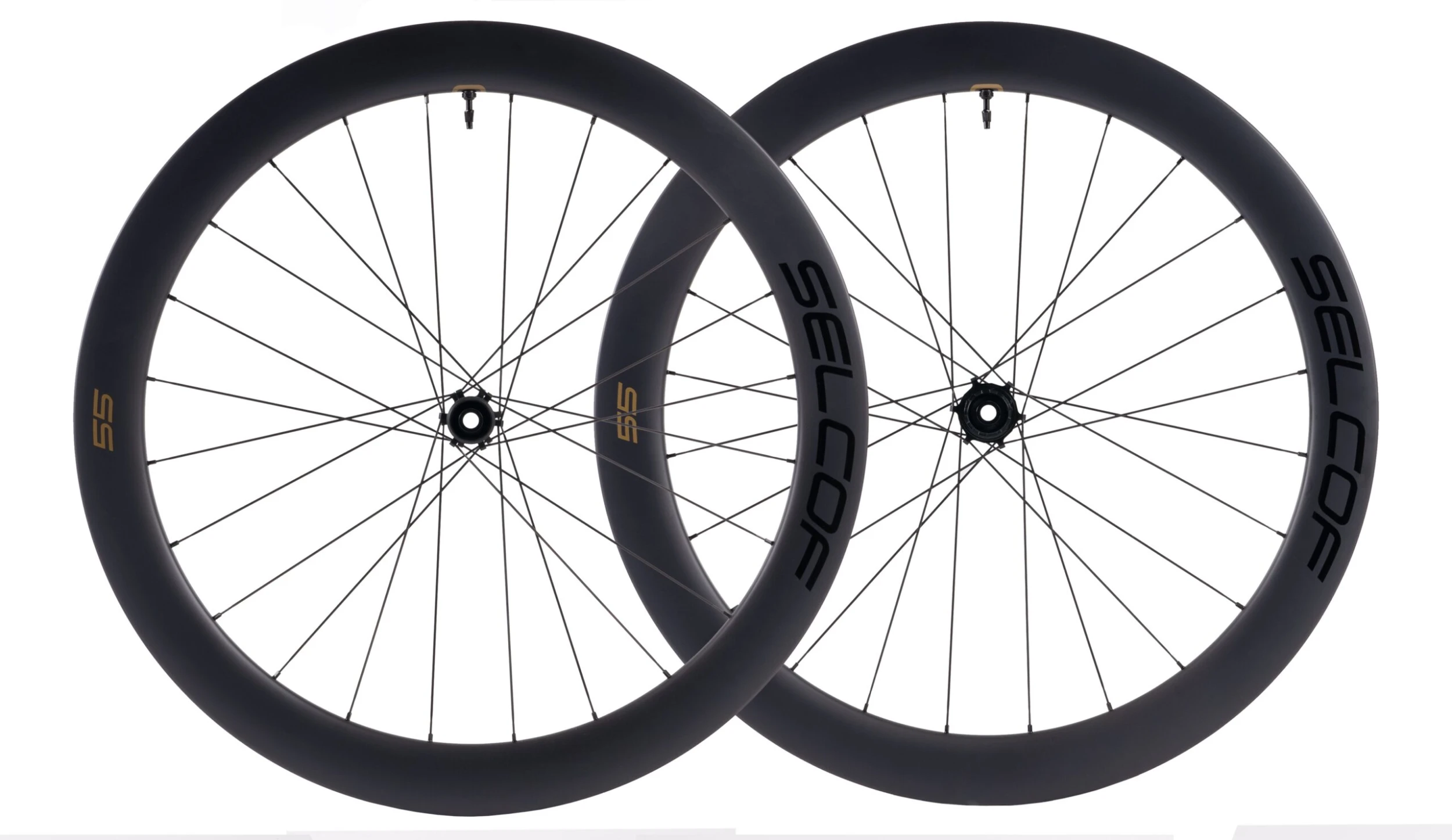 Perhaps the most important speed upgrade you can make to any modern road bike. The Selcof 55 Carbon Disc Wheelset is aerodynamic, strong, and lightweight. 55mm rim depth offers high speed, watt saving versatility. The deep section 28mm external wide U-profile rim massively reduces aerodynamic drag across multi yaw angles, whilst minimising crosswind feedback. Lightweight for effortless climbing performance. A wide internal 21mm rim width allows for wider tyres and rounder tyre profiles, resulting in better handling and reduced rolling resistance.