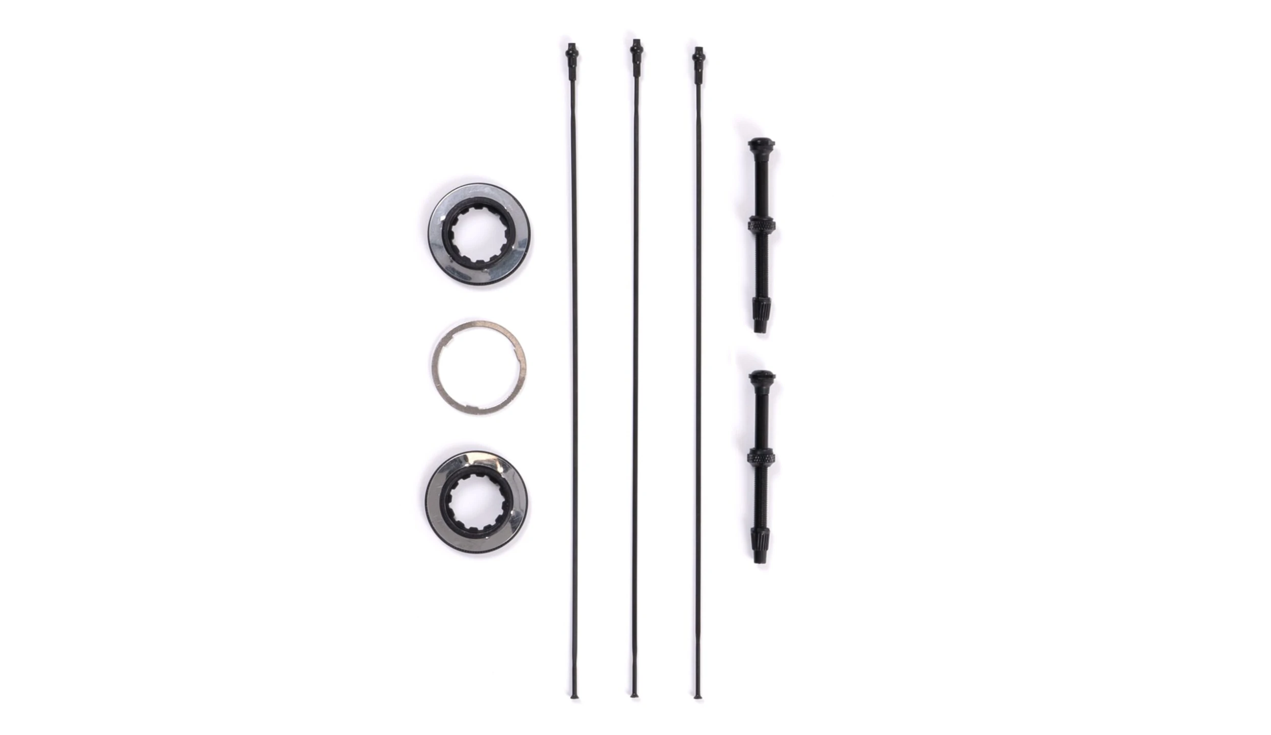 - Disc Brake Extras: Includes: Spare spoke set, tubeless valves, Centrelock rings