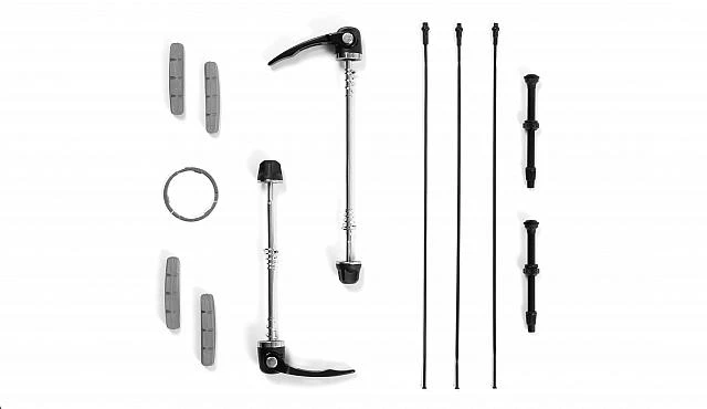 - Rim Brake Extras: Includes: Spare spoke set, tubeless valves, Carbon specific brake pads, Cam lock quick release skewers