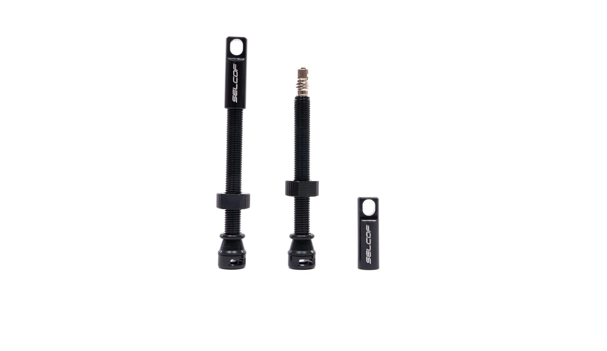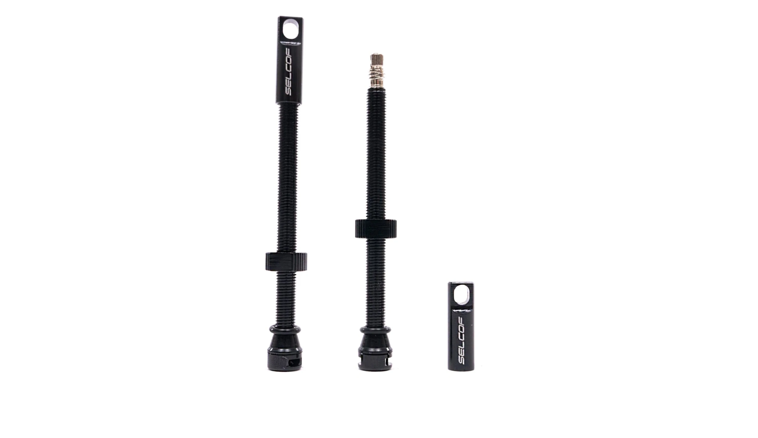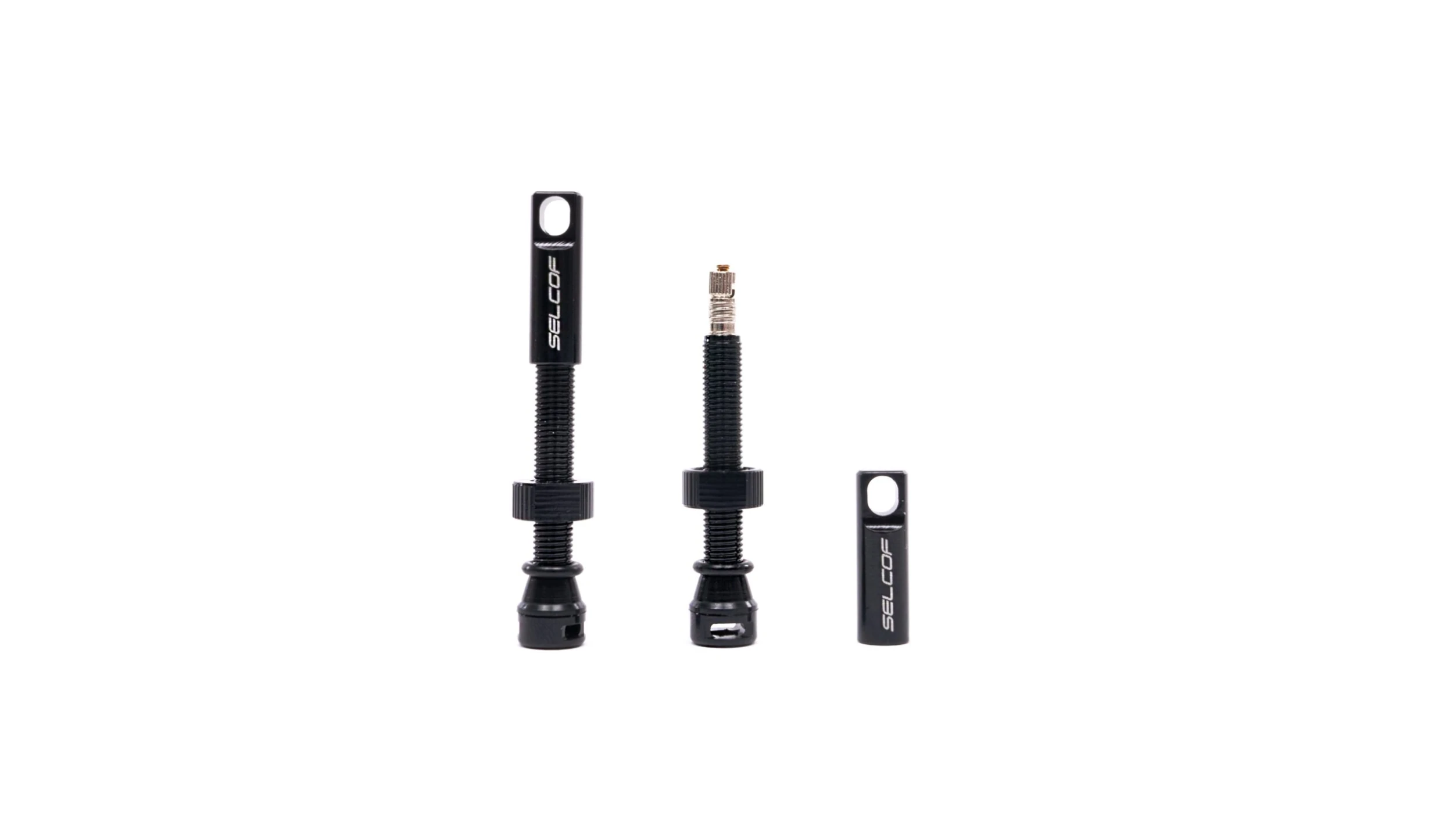 Lightweight hard anodised 7075 aluminium tubeless valves from Selcof. The lateral air flow base means air and sealant flows easily and does not clog, even when using tyre inserts. The core is removable for easier sealant installation. The dust cap doubles as a valve core remover. A unique allen key fitting ensures the valve is locked in place to the rim