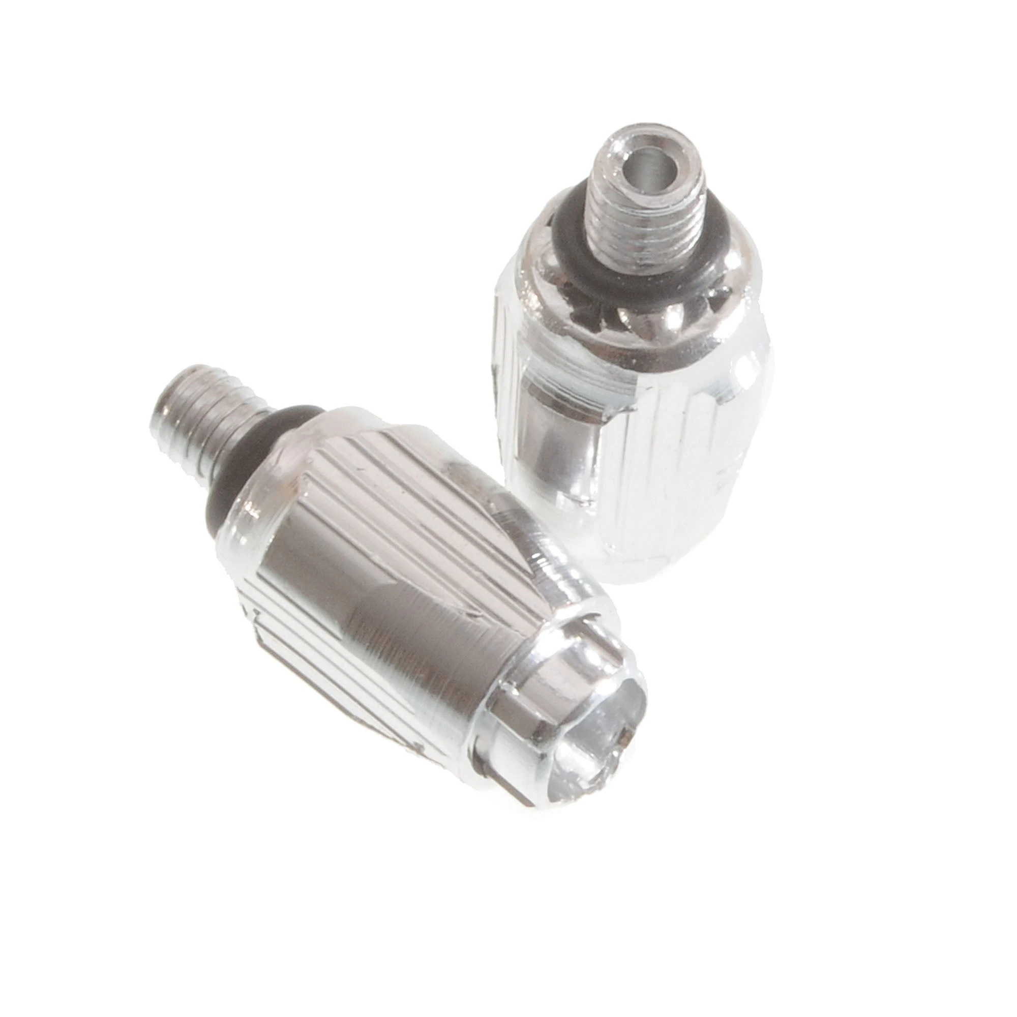 Down tube cable adjusters for road and cyclocross bikes. Micro adjustment for shifting precision on the go.
